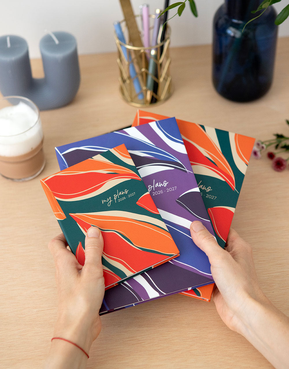 Introduce nature to your every day pl7ans with our unique case bound masterpiece, the 26-27 diary from the Botanics Collection, available in A6 size, in rich green and elegant plum, with a printed, matt-laminated, hard cover. This planner combines durability with sophisticated style, seamlessly blending functionality with botanical beauty. Multilanguage week to view diary in English, French, German, Italian, Dutch and Spanish.