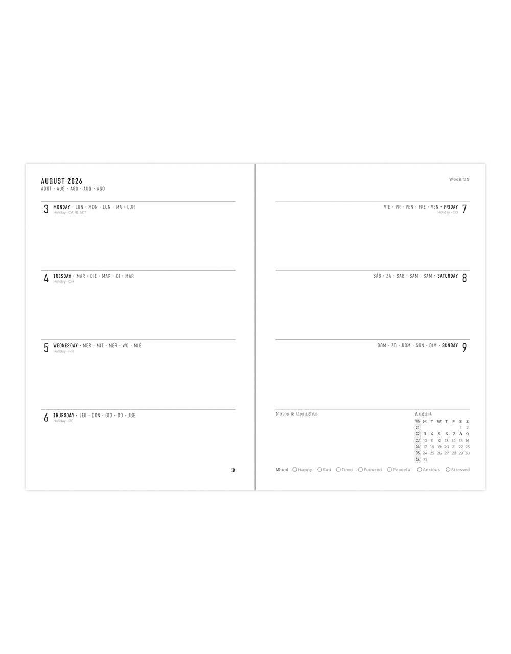 • 18-month mid year week to view diary (29/06/2026 - 09/01/2028)
